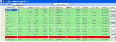 After NSETicker, NSEGrabber and EOD downloader now its time for NSEFutStkTicker(NSE Future Stock Ticker). This software is very similar to NSETicker (http://manjunathg.blogspot.com/2007/06/nse-portfolio-ticker.html) but here the future derivatives information is displayed.